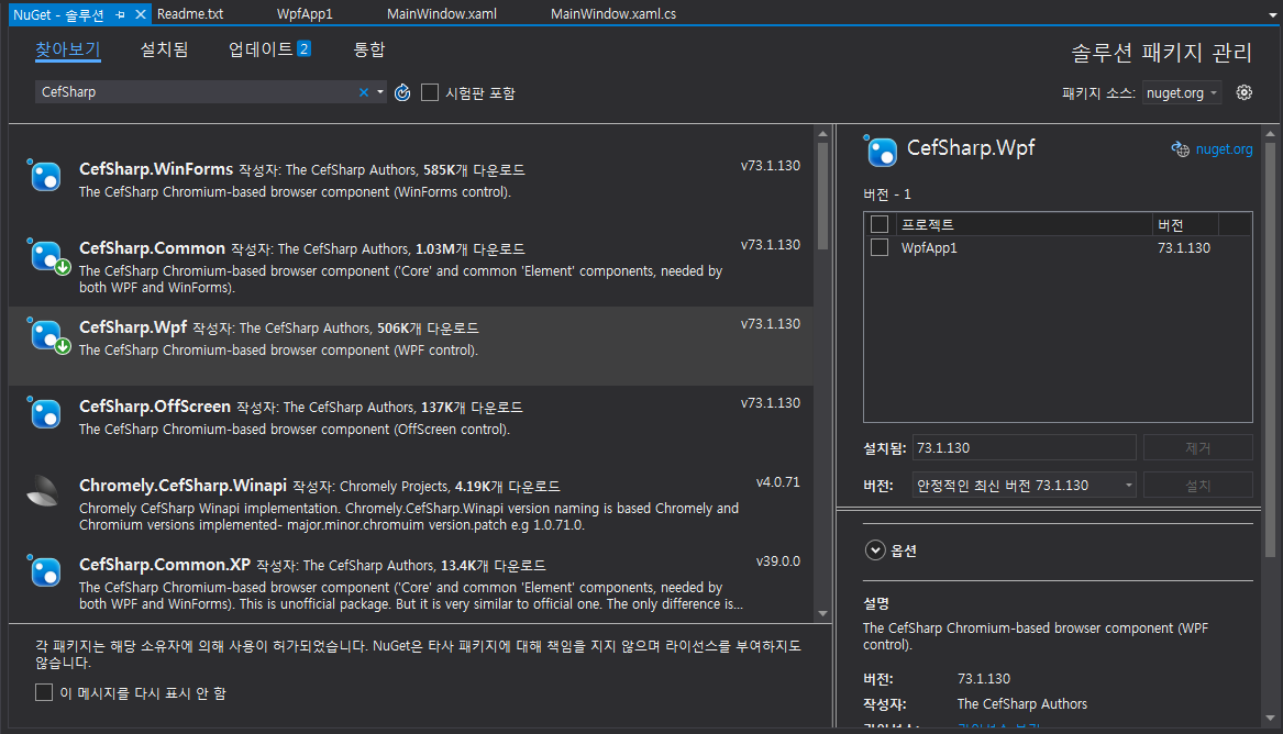 CefSharp.Wpf 용 설치
