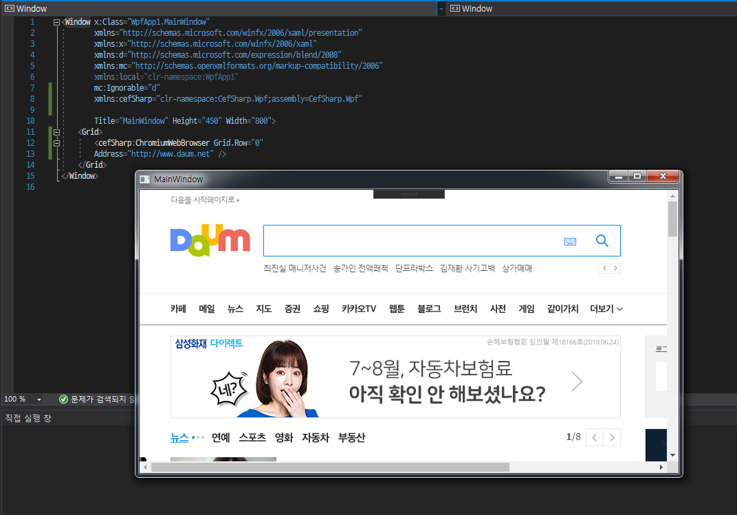 기본 WebBrowser 대신에 ChromiumWebBrowser 사용해서 오류 없애기